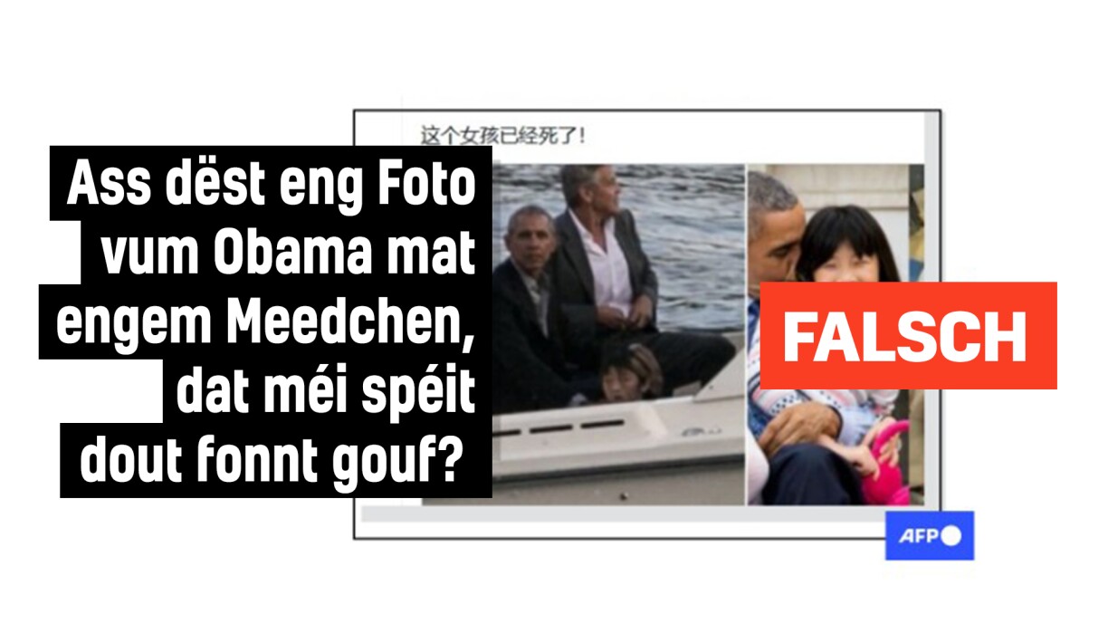 AFP huet schonn eng Kéier d’Behaaptung widderluecht, datt d’Foto en net ubruecht Behuel vum Obama duerstellt.