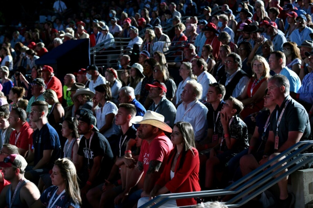 Dausenden Zuschauer ware bei der Ried vum President dobäi, nëmme wéineg vun hinnen haten eng Schutzmask un.