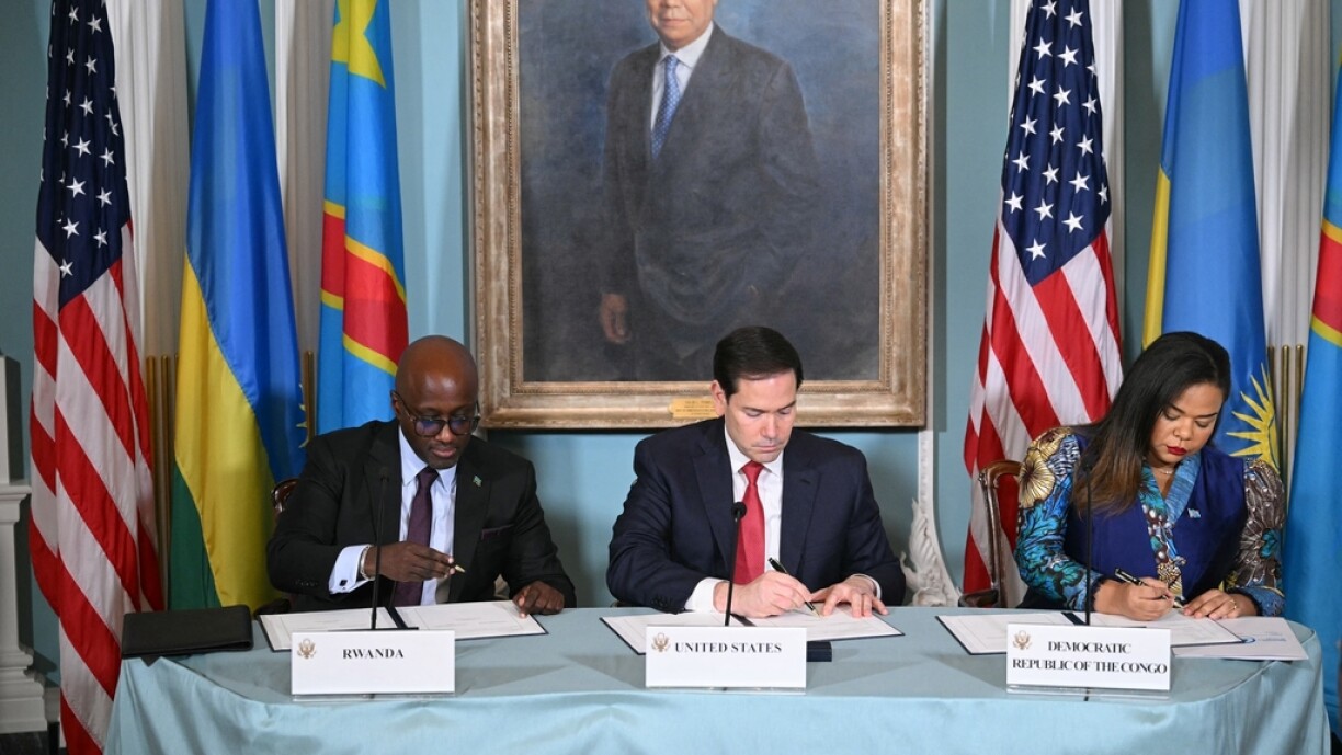 D’Ofkommes war e Freideg zu Washington a Presenz vum US-Ausseminister Marco Rubio vum ruandeschen Ausseminister Olivier Nduhungirehe a senger kongoleesescher Homologin Thérèse Kayikwamba Wagner ënnerschriwwe ginn. Béid Länner verflichte sech doran, hir Ënnerstëtzung fir arméiert Milizen ze stoppen. Den US-President Trump huet erkläert, duerch d’Vermëttlung am Konflikt hätte sech d’USA d’Aussiicht op “vill” kongoleesesch Buedemschätz geséchert.