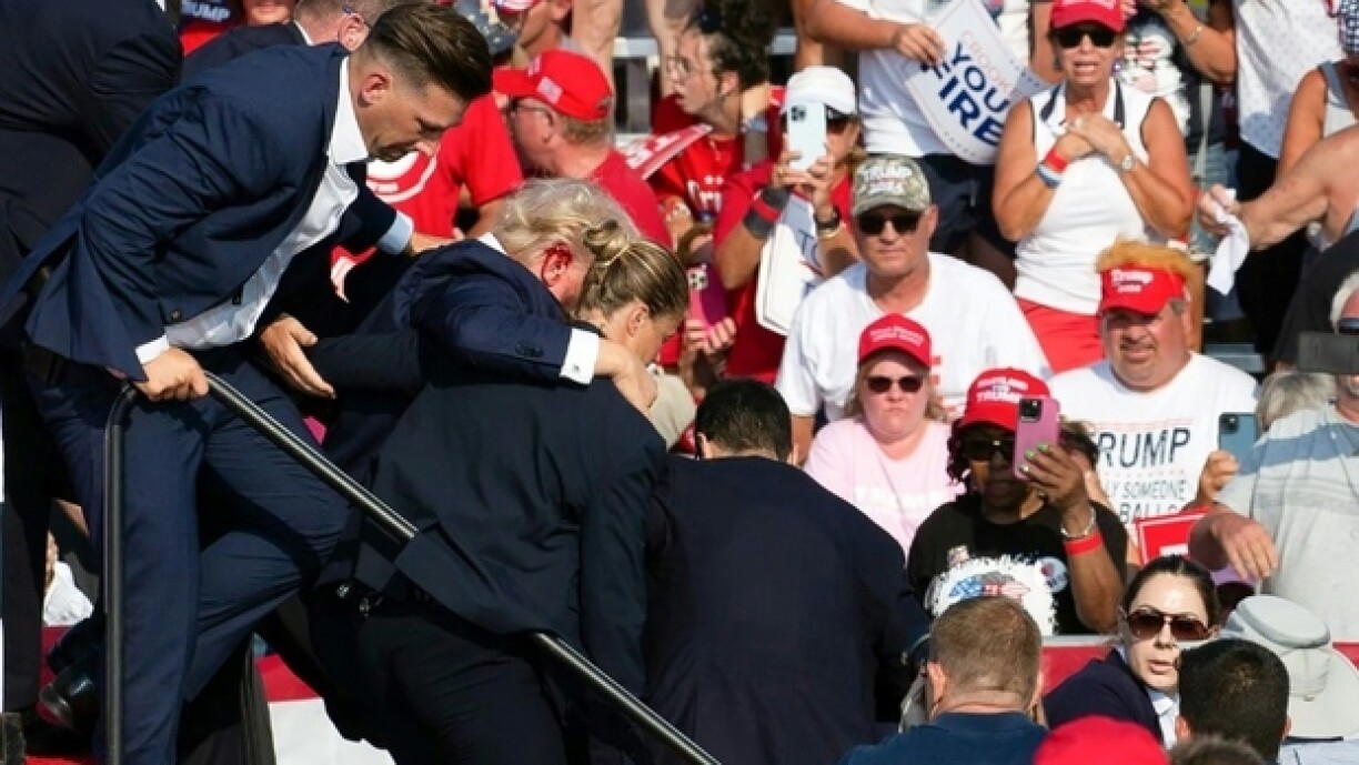 Bei engem Walkampf-Optrëtt am US-Bundesstaat Pennsylvania sinn an der Nuecht op e Sonndeg eiser Zäit Schëss gefall. Den FBI schwätzt vun engem versichte Mord, respektiv geziilten Attentat op den Donald Trump. De fréieren amerikanesche President gouf um rietsen Ouer vun enger Kugel getraff a liicht blesséiert. Ee vun den Trump-Sympathisante koum beim dramateschen Tëschefall ëm d’Liewen. Den Täter gouf no senger Dot vum Secret Service erschoss.