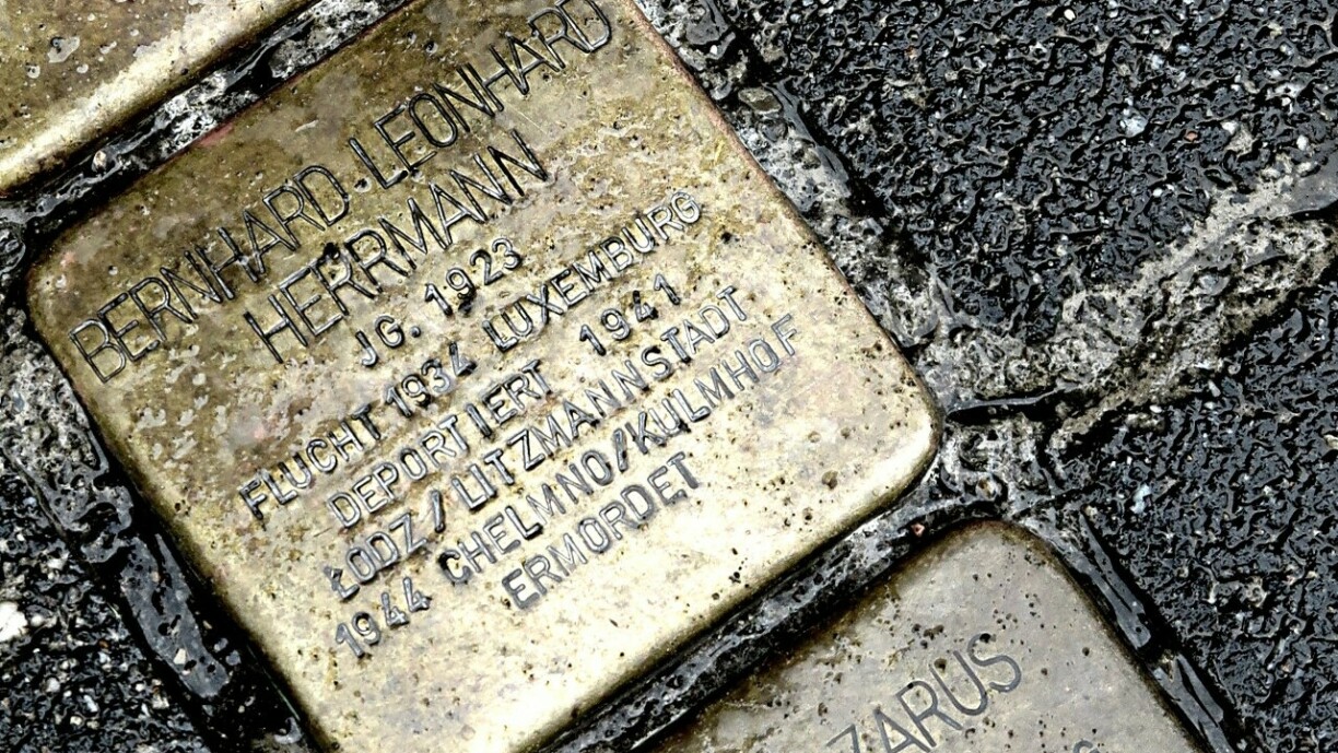 „Bernhard-Leonhard Herrman, Jg. 1923 / 1934 Flucht Luxemburg / deportiert 1941 Lodz/Litzmannstadt / 1944 Chelmno/Kulmhof / Ermordet“.