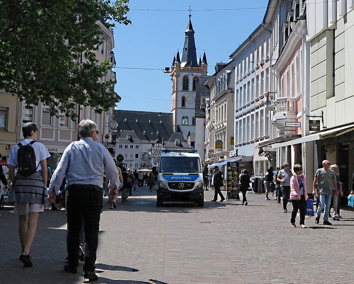Um “Hauptmarkt” ass net vill lass. De Wäikiosk ass zou. An eng Koppel diskutéiert, op Lëtzebuergesch w.e.g., wou se dann deemools déi schéin Pabeierblumme kaaft haten, heivir oder dohannen, a se gi sech net eens. Nach der zwee, déi en “triftigen Grund” haten, op Tréier ze kommen.