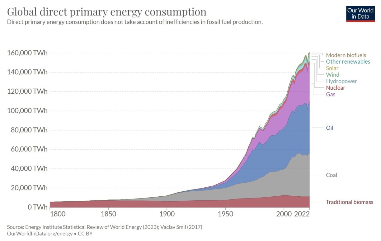 Op der Sich no der Äntwert op dës Fro ass et sënnvoll fir sech an e méi globale Kontext ze setzen. Dat kann ee mat folgender Grafik iwwer de weltwäiten Energieverbrauch maachen :