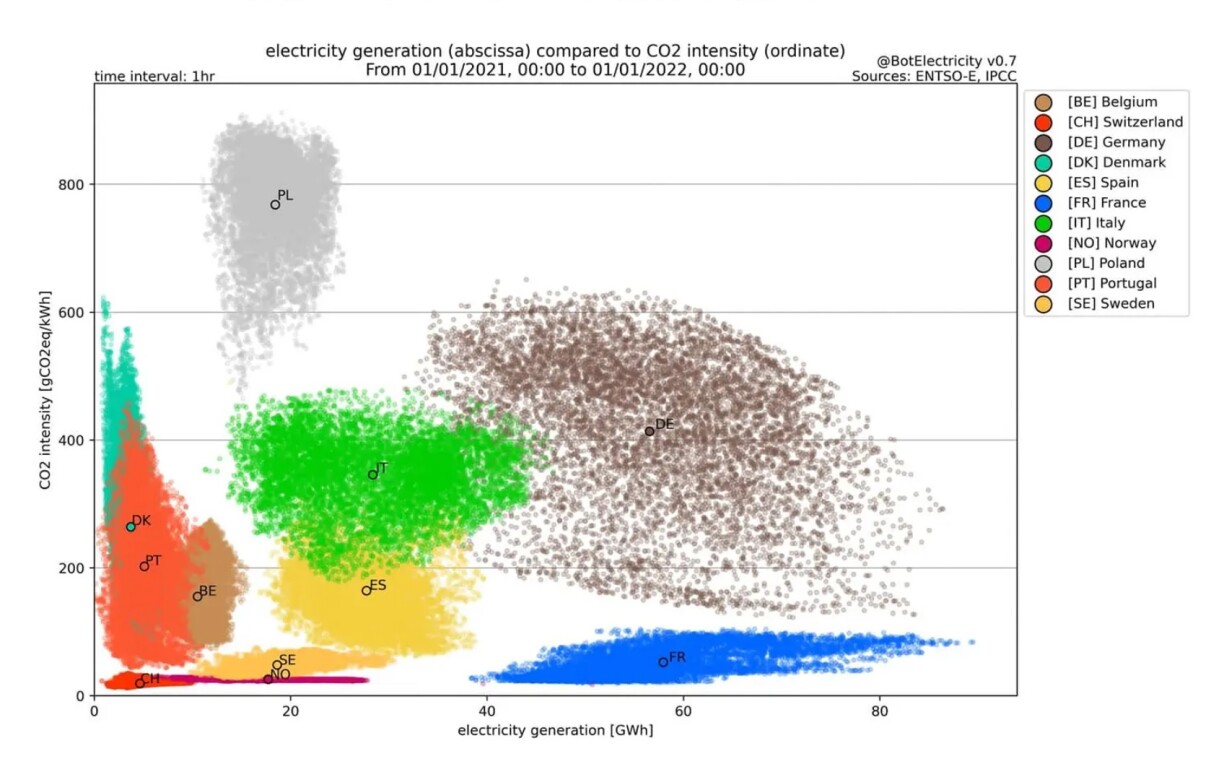 Dogéint läit den CO2-Gehalt zum Beispill vum franséische Stroum eng Gréisstenuerdnung ënner deem däitschen, a bei der franséischer Primärenergie ass den CO2-Gehalt parallel zu dem schnellen Ausbau vun der Kärenergie insgesamt ëm ronn d’Hallschent gefall.
