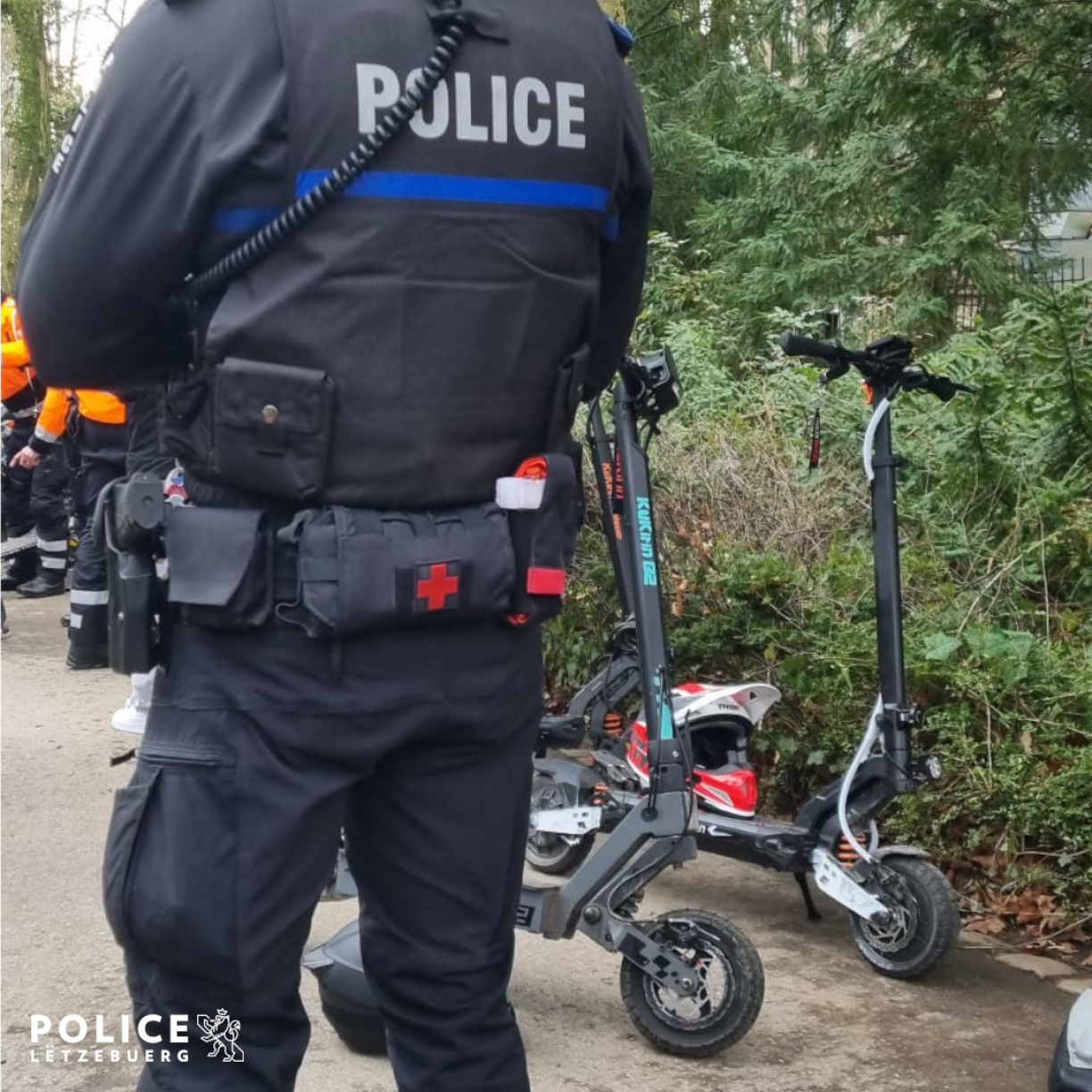 Am Kader vun dëser Kontroll goufen am Ganze 15 elektresch Trottinetten iwwerpréift, bei verschiddenen technesch Modifikatiounen oder Mängel festgestallt g sinn, déi net konform mam Code de la route sinn. Et gouf ënner anerem festgestallt, datt e puer Trottinetten esou manipuléiert goufen, datt si déi erlaabte Maximalvitess vun 25 km/h iwwerschratt hunn. Als Konsequenz dovun goufen 14 Trottinetten saiséiert.