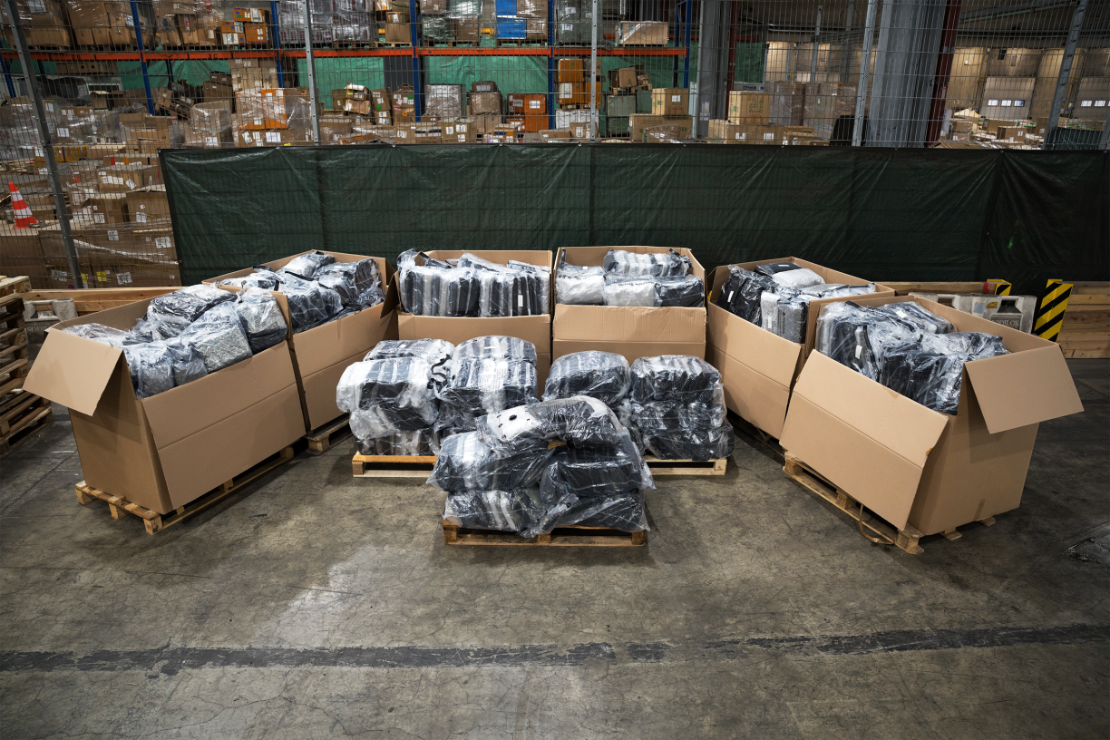 Selon les documents présentés aux autorités, la livraison devait contenir 3 063 kg de « Furniture, Deck chair, Sofa Stool » destinés à être livrés à une entreprise belge. L’envoi se composait de 12 palettes contenant chacune environ douze caisses en carton enveloppées d’un film plastique de couleur noire.