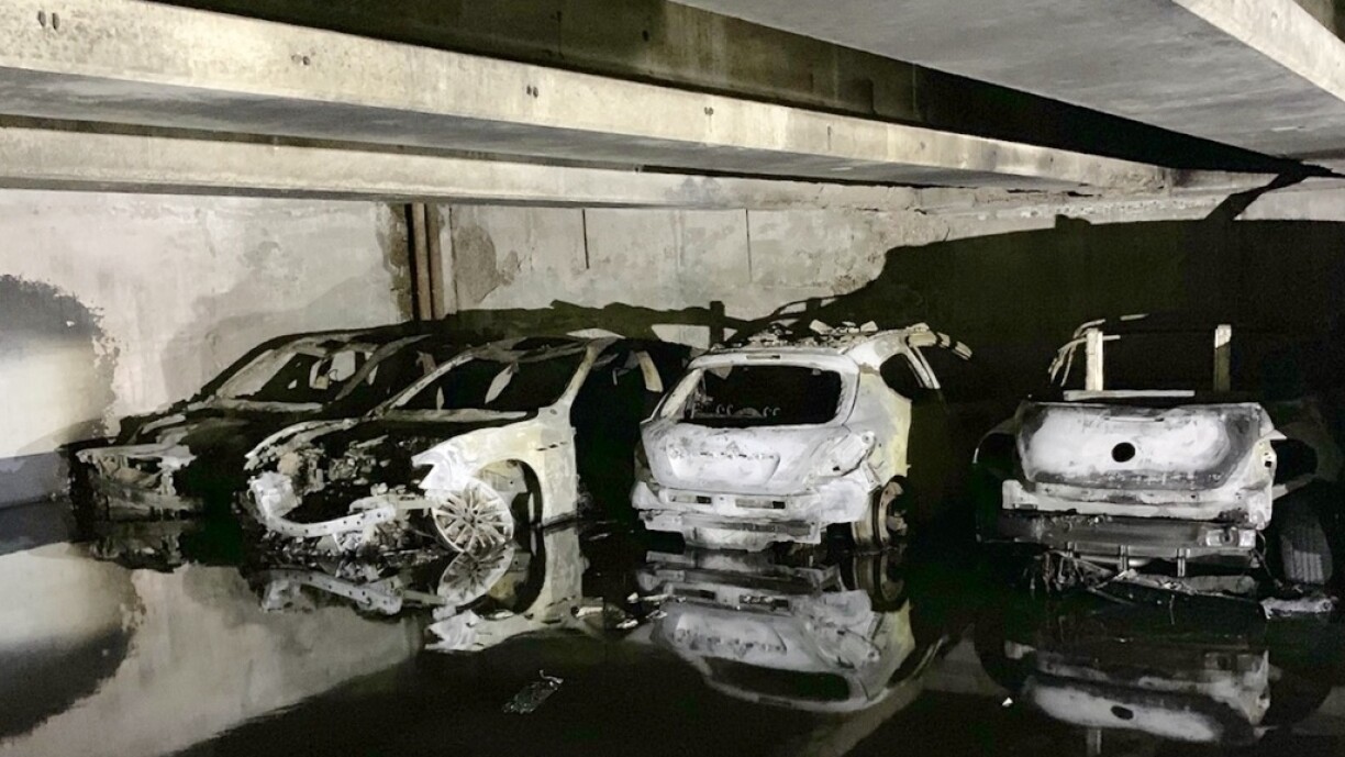 Feier um -1 ënner Kontroll: Keng Blesséierter bei Brand vu 5 Autoen am Parking um Rousegäertchen
