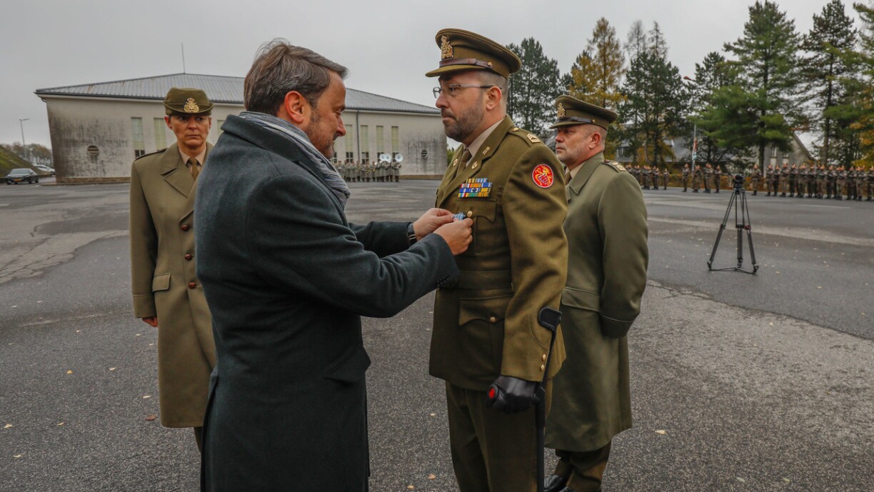 Xavier Bettel a remis la croix d'honneur et de mérite militaire en vermeil à l'adjudant-chef John Lanser, qui a été gravement blessé lors du tragique accident survenu au dépôt de Waldhof en février de cette année.