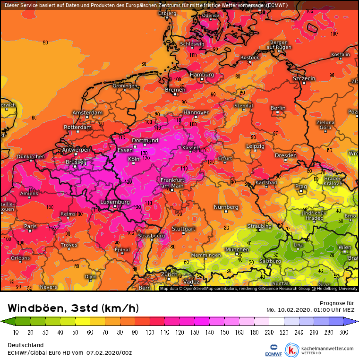 Nieft der Alerte Orange/Rouge wéinst dem Stuerm, gëtt et awer och nach eng Alerte Jaune wéinst dem Reen, deen erofkomme soll. Et rechent ee mat 20 bis 30 Liter pro m².
