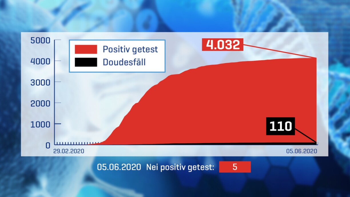 Coronavirus zu LëtzebuergVun 1.296 Tester waren der 5 positiv, keng nei Doudesfäll