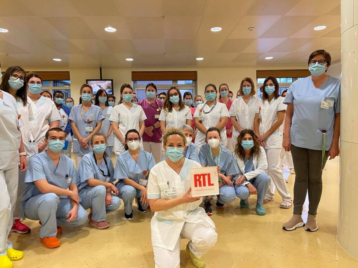 A symbolesch fir d’Personal aus dem Fleegesecteur hu mir dem Sonja Kohnen an de Leit vun hirem Service aus dem Sanatorium zu Veianen dës Auszeechnung iwwerreecht.