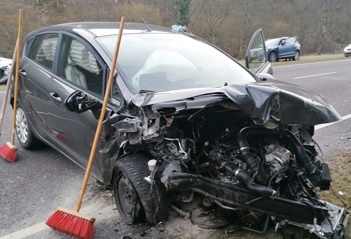 Beim Accident goufen zwou Persoune blesséiert, d’Streck gouf zäitweis gespaart, fir d’Plaz vum Accident ze raumen.