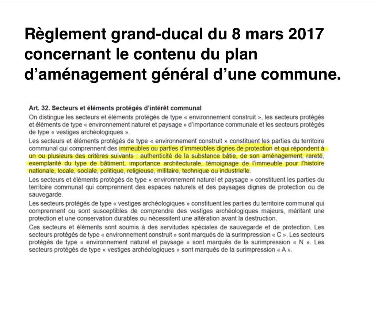 D’Denkmalschützer trauen de Gemenge net, zemools d’PAGen zack zack kënne geännert ginn, duerch MOPOen, also Modifications Ponctuelles. Als Federatioun ass hiert Ziel, d’Ministesch vun der Kompetenz vun der Kultur z’iwwerzeegen. Déi géifen eppes vu Patrimoine kennen an déi richteg Prioritéite setzen. D’Taina Bofferding kontert scho virun hirem Rendez-vous.