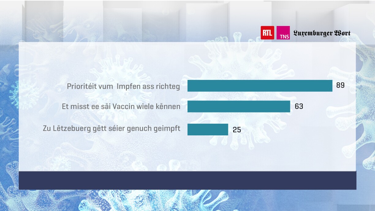 D’Impfcampagne zu Lëtzebuerg géing dann ze lues lafen, där Meenung si carrement ¾ vun de Leit.