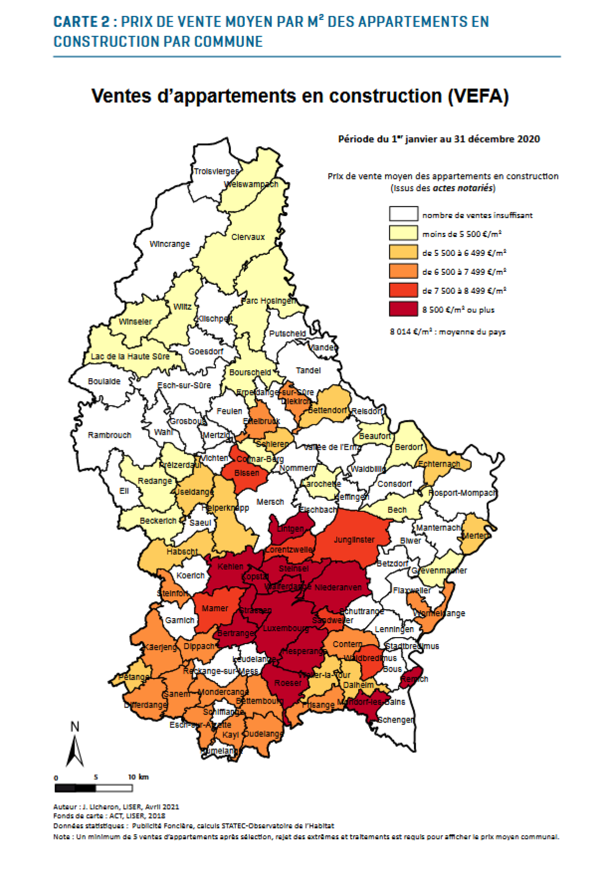 Nei Appartementer sinn duerchschnëttlech op 1 Joer gekuckt 14,4% méi deier ginn, aler souguer 15,8%. Bei den Haiser ass et eng Hausse vun 19,7% op ee Joer gekuckt. Wat d’Wunneng oder d’Haus méi no bei der Stad läit, wat de Meterkaree-Präis méi héich ass.