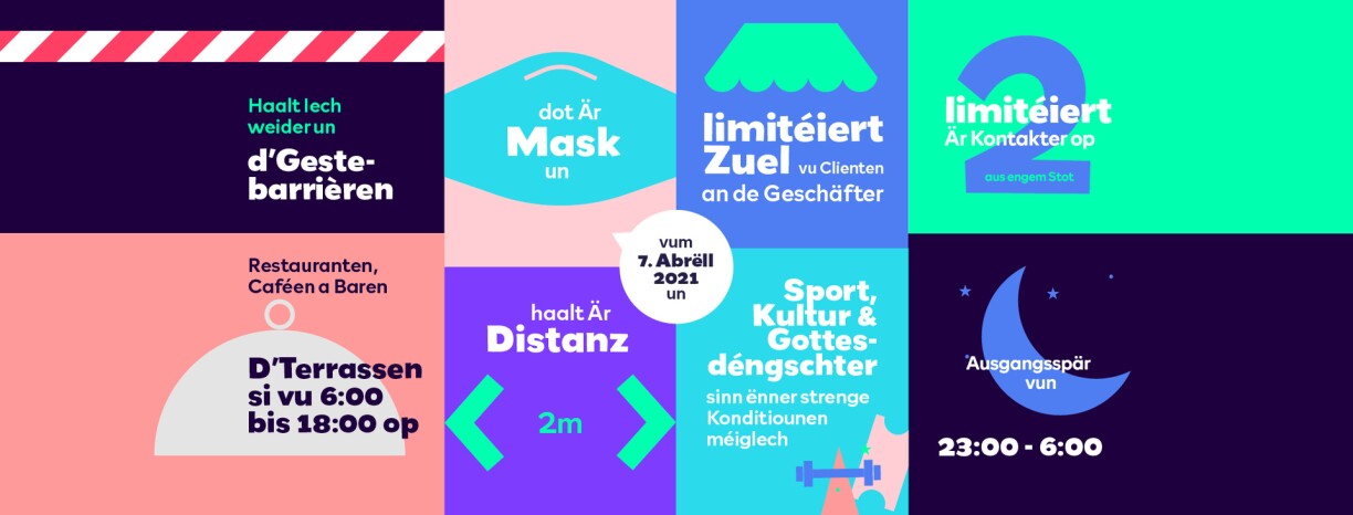 Donieft gëtt am neie Covid-Gesetz och definéiert, wéi eng Krittären eng Terrass erfëlle muss. Bis ewell waren d’Terrassen nach net reglementéiert. D’Terrassen dierfen also ënnert den aktuelle strenge Konditiounen opbleiwen. D’Limitéierunge bei de Rassemblementer vu Leit an de Couvre-feu vun 23 Auer owes u wäerten elo mol bäibehale ginn. De Xavier Bettel huet awer an Aussiicht gestallt, dass et nom 15. Mee op dëse Punkte kéinten Ännerungen ginn, wann d’Zuele stabel bleiwen.