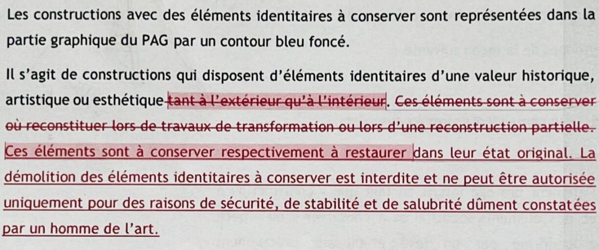“La démolition des éléments identitaires à conserver est interdite”, steet elo do an dat wier scho méi Schutz wéi an der éischter Versioun vum PAG, erkläert d’Inneministesch, déi net vu ronn 400 effektiv geschützte Gebaier schwätzt, mee vun 1.400.