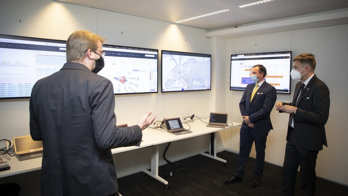 S.A.R le Grand-Duc héritier et le ministre de l’Économie, Franz Fayot, ont visité en date du 4 mai 2021 SECURITYMADEIN.LU, l’Agence de cybersécurité au service de l’économie luxembourgeoise et des communes. L’équipe multidisciplinaire de l’agence est composée de 41 experts spécialisés dans la détection et le traitement d’incidents, la protection et la prévention, la mise à l’épreuve de solutions «cyber» ainsi que l’amélioration des compétences en matière de gestion du risque. Après une présentation globale des activités de l’agence, S.A.R. le Grand-Duc héritier et le ministre de l’Économie ont assisté à des démonstrations dont une mise en situation dans la ROOM#42, un simulateur de crise «cyber» qui permet aux équipes qui participent à un tel exercice d’identifier les points à améliorer afin de consolider leur compétence collective dans la gestion de crise.