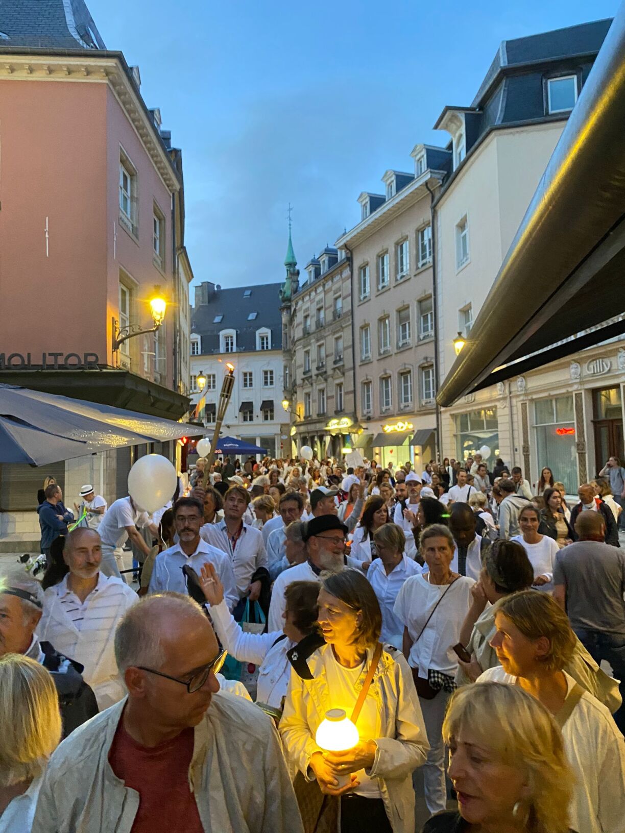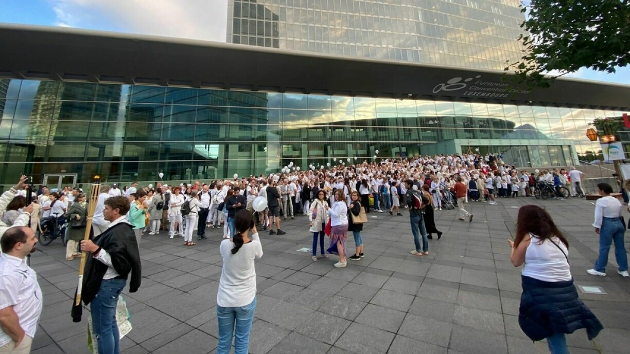 Wéi een op Biller op de soziale Reseaue gesäit, sinn d’Leit wäiss gekleet vum Kierchbierg, laanscht d’Philharmonie an iwwert déi rout Bréck an d’Stad marschéiert.