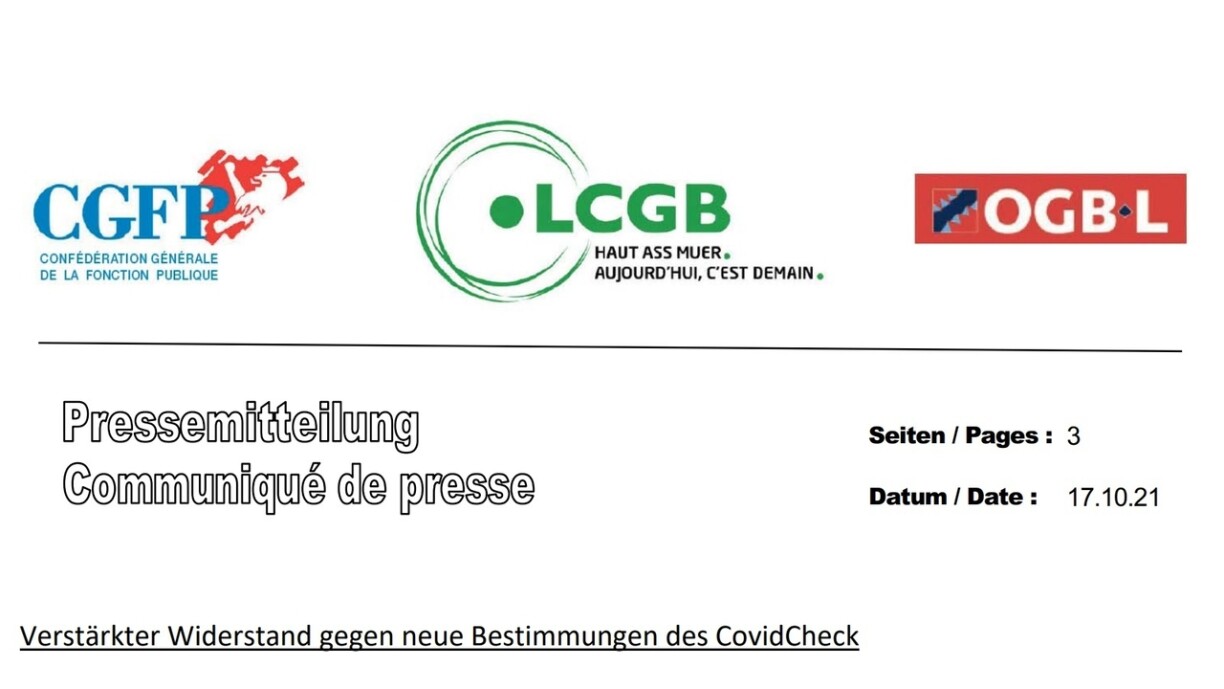 D’CGFP, den OGBL an den LCGB fuerderen all Deputéiert op, den Artikel iwwert de CovidCheck an engem separate Vott net mat ze droen.