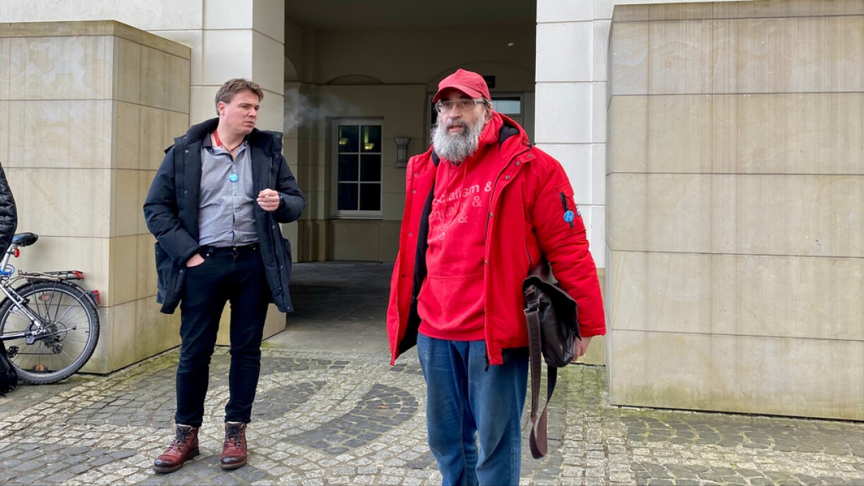 Mat 10 Minutte Verspéidung ass de Peter Freitag an de Geriichtssall eragestiermt komm. Vu grousser Opreegung awer keng Spuer. Säi Kolleeg a Matugekloten Jean-Marie Jacoby souz schonn zanter enger knapper hallwer Stonn do ze waarden. Seng déck rout Jackett iwwer sengem roude Pullover huet hien net ausgedoen a wäert dat och wärend dem ganze Prozess vu bal 3 Stonnen net maachen. Eng Mask kéint hien och net undoe wéinst enger Longeverätzung. Affekote waren da keng am klengen Geriichtssall, déi 2 Ugekloten hu sech nämlech selwer verdeedegt.