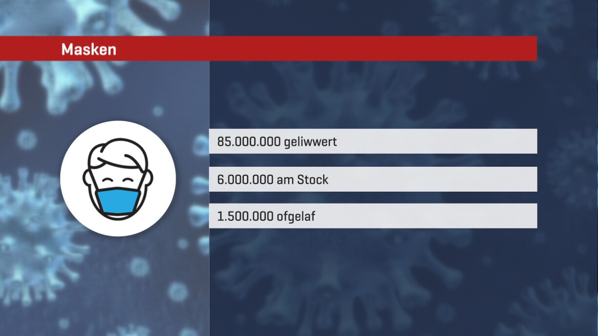 De Staat huet Masken am grousse Stil kaf. Bis haut 85 Millioune Stéck. Am Stock leien den Ament nach 6 Millioune Masken. 1,5 Milliounen hu missen ewech geheit ginn, well se ofgelaf waren.