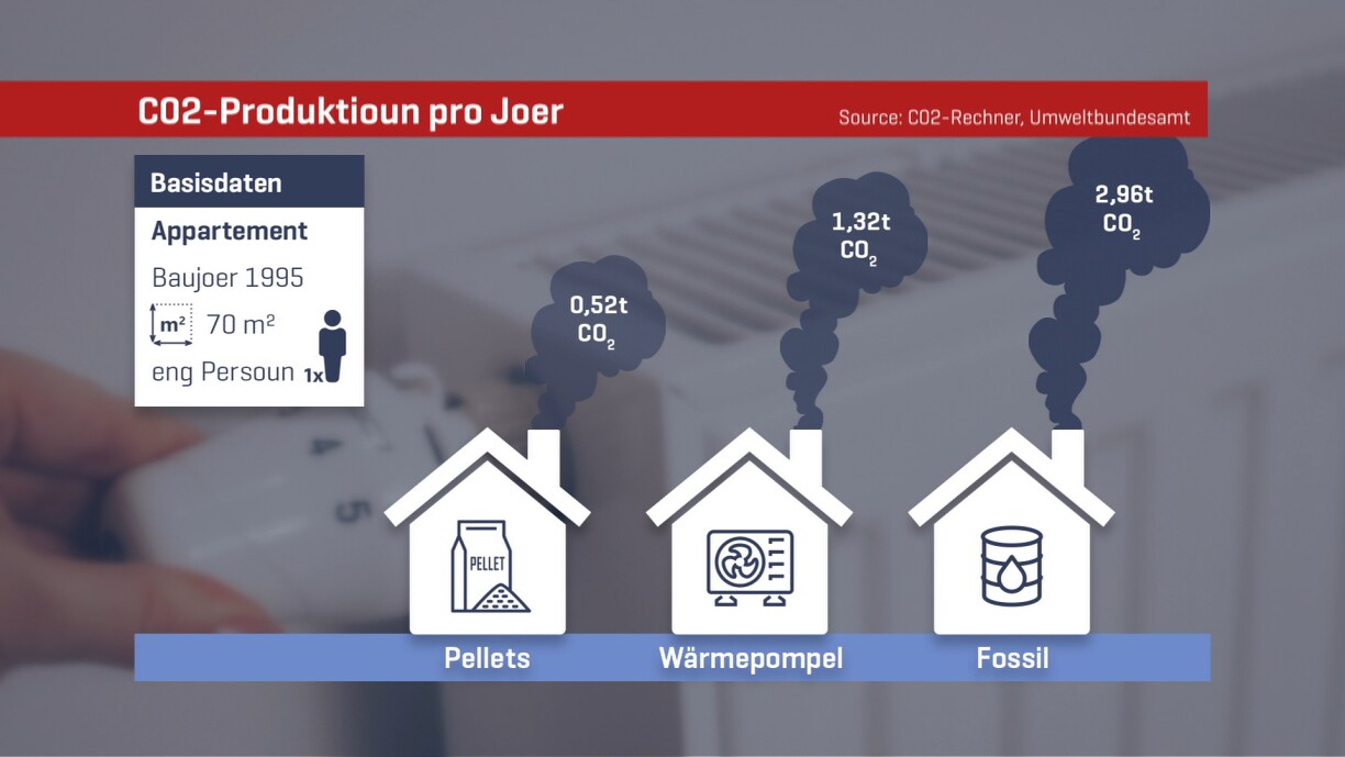 Dobäi kléngt d’Verspriechen op den éischte Bléck mol gutt: bei engem eeleren Appartement zum Beispill läit d‘Aspuere vum CO2 bei méi wéi 80 Prozent par Rapport zu enger Masuttsheizung.