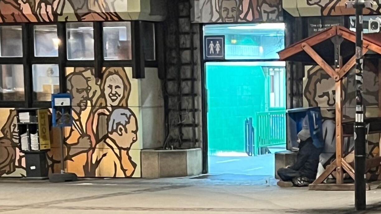 Ech schwätze mat engem Serveur, deen am Restaurant vis-à-vis schafft: “Jo, hie sëtzt relativ dacks do an och zimmlech laang. Hien ass awer ganz fein. Heiansdo ginn ech ëm e puer Zigaretten oder eppes ze drénken. D’lescht Kéier krut e souguer eng ganz Pizza vun engem Grupp Jonker. Iwwerhaapt kritt e reegelméisseg kleng Spenden a Form vun Iessen.”