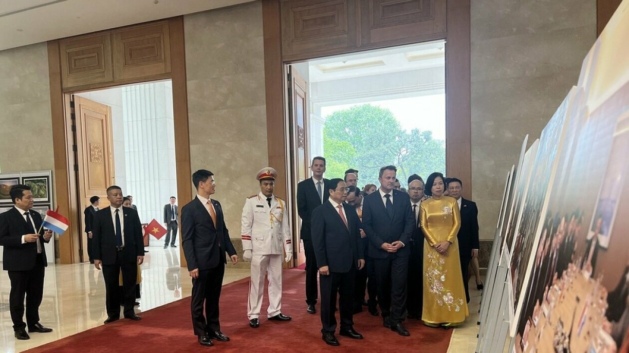 Wéi déi zwee Premieren openee getraff sinn, gouf souwuel déi lëtzebuergesch wéi och vietnamesesch Nationalhymne gespillt. De vietnamesesche Premier Phạm Minh Chính huet dem Xavier Bettel dann och Fotoe gewise vu fréiere Visitten.
