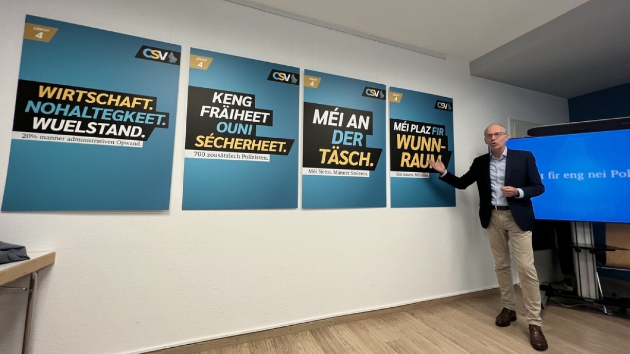 Eng nei Politik mat engem neien Luc Frieden, wëll ee bei de Chrëschtlech-Sozialen. Deementspriechend war et dann och de Spëtzekandiat, deen e Freideg de Walprogramm virgestallt huet. Manner Steieren a méi Kafkraaft, ënner anerem doropper wëll een de Fokus leeën. Et wéilt ee fort vun der Politik, déi d’Dräier-Koalitioun zënter engem Joerzéngt mécht.