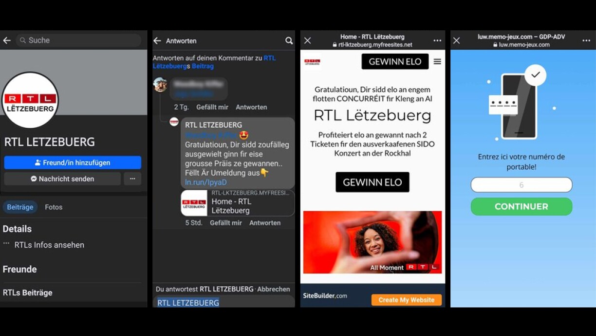 Passt och op, wéi d’Schrëft esouwuel vum Site wéi awer och vun de Messagen ass: Passt se mam Site, deen Dir kennt iwwerteneen, an ass se net voller Schreiffeeler. Sollt Dir de Link vum “Gewënnspill” kënne gesinn (Dëst ass méiglech, wann Dir mat der Maus op de Link gitt, ouni ze klicken. Da gëtt ënne lénks am Eck vun ärem Bildschierm de komplette Link ugewisen), passt op, datt dëst och déi richteg RTL Säite sinn (rtl.lu, today.rtl.lu, infos.rtl.lu oder play.rtl.lu).