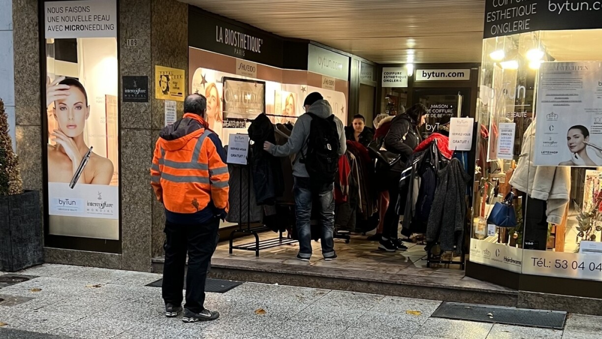 Déi gesammelt Mäntel gi Sonndes, den 21. a Méindes den 22. Januar 2024 virum Coiffeurssalon zu Esch ausgehaangen a gratis verdeelt.