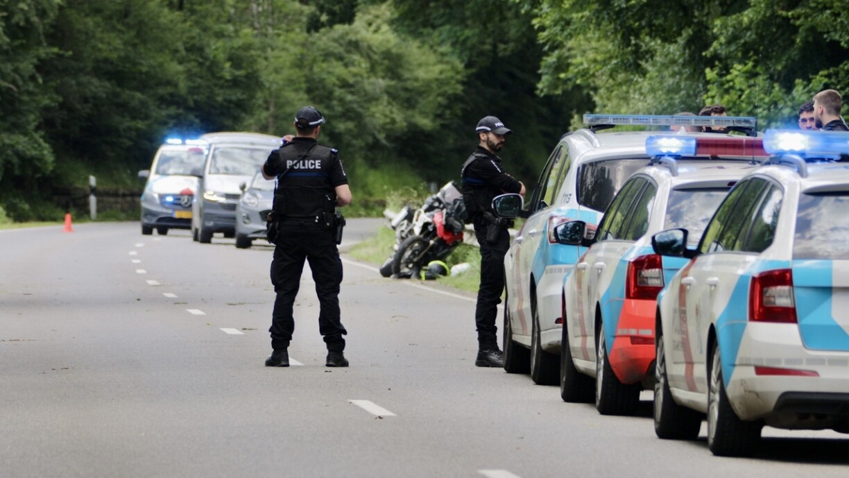 D’Police sicht virun allem nom Chauffer vun engem drëtten Auto, dee vum Motocyclist an dem Auto, deen an den Accident involvéiert ass, iwwerholl gouf. Wie soss eppes gesinn oder Informatiounen huet, soll sech bei der Police vun Iechternach ënnert der Nummer 244 72 1000 oder per Mail u police.ECHTERNACH@police.etat.lu mellen.