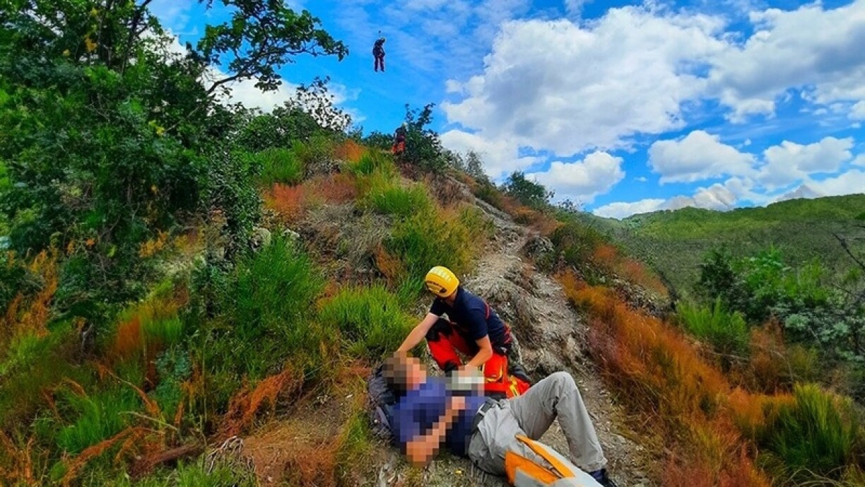 Zesummen hunn d’Rettungsekippen de Patient mat enger Seelwann aus der Loft aus gerett, éier de Mann an d’Spidol transportéiert gouf.