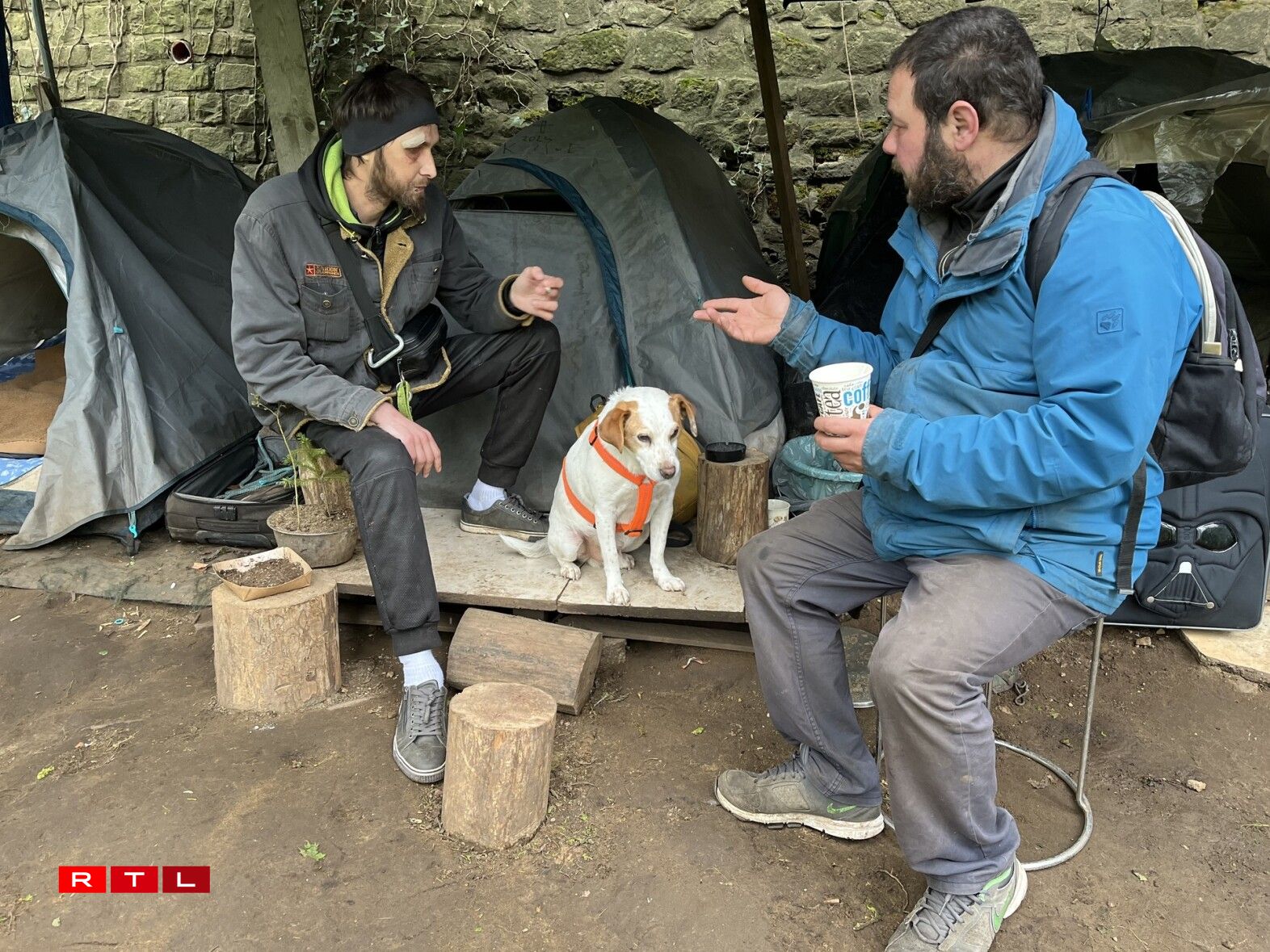 De Stefan a säi Kolleeg Ferenc huelen eis mat an de Bësch um Kierchbierg. Hei wunne si zanter annerhallwem Joer Joer an hiren Zelter, zesumme mat hire Muppen Chilli a Pici.