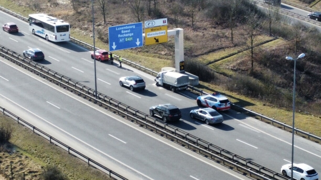 Dat huet dozou gefouert, dass d’Autobunn Richtung Stad no der Sortie Colmer-Bierg fir den Trafic huet musse gespaart ginn an et huet ee mussen d’Sortie Colmer-Bierg huelen. Déi Autoen, déi nach am Beräich tëscht dem Accident an der Sortie Colmer-Bierg stoungen, ware géint 11.40 Auer duerchgelooss ginn.
