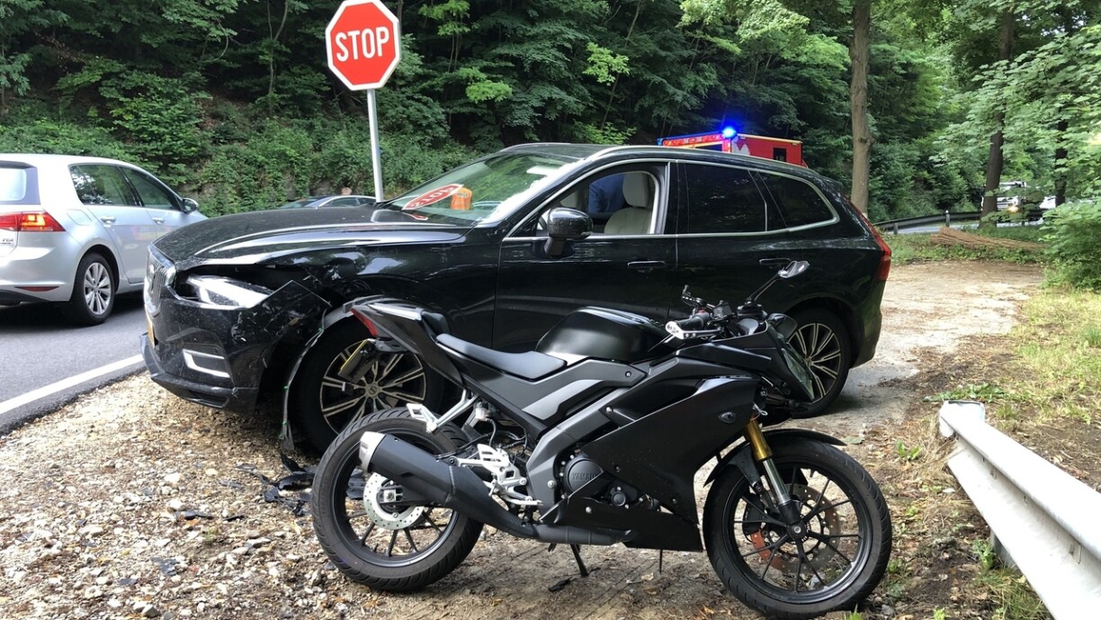 Zu Hollerech an der Rue du Bouillon si kuerz viru 14 Auer en Auto an e Motocyclist kollidéiert. Eng Persoun gouf dobäi verwonnt.
