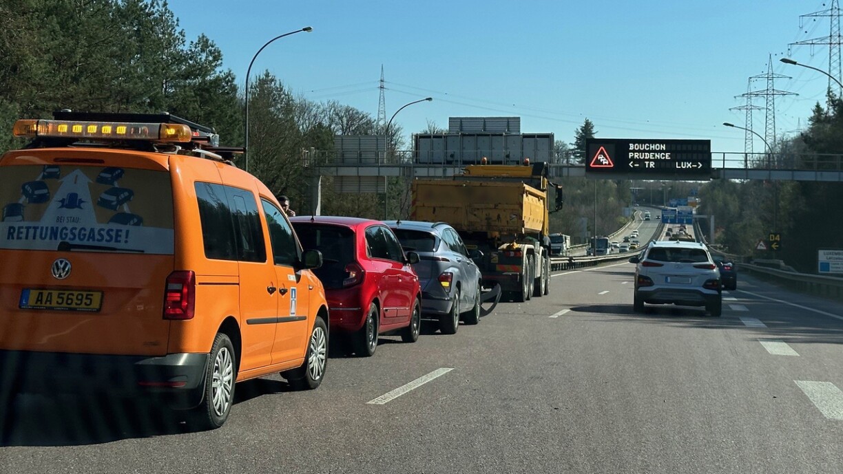 E Camion an zwee Autoe waren an den Accident verwéckelt. Duerch den Accident war eng Spuer blockéiert, gouf awer vu Ponts et Chaussées ofgeséchert. Um 14.56 Auer koum vum CITA d’Entwarnung, dass d’Gefierer op der Pannespuer géife stoen a béid Spueren nees fir den Trafic op wieren.
