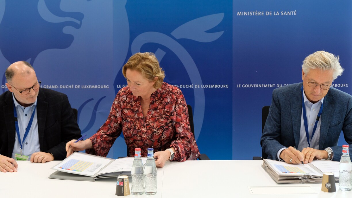 La signature officielle a eu lieu en présence des quatre directeurs généraux des établissements hospitaliers luxembourgeois en tant que cosignataires, à savoir Dr Marc Berna, directeur général des Hôpitaux Robert Schuman, Dr René Metz, directeur général du Centre hospitalier Emile Mayrisch, Dr Romain Nati, directeur général du Centre hospitalier du Luxembourg, Dr Paul Wirtgen, directeur général du Centre hospitalier du Nord. De plus, ont signé la convention, Luc Gindt, directeur général de l’Hôpital intercommunal de Steinfort, Dr Mark Ritzen, directeur général du Centre hospitalier neuro-psychiatrique, Dr Gaston Schütz, directeur général du Centre de rééducation fonctionnelle et de réadaptation, et professeur Guillaume Vogin, directeur médical et général du Centre François Baclesse.