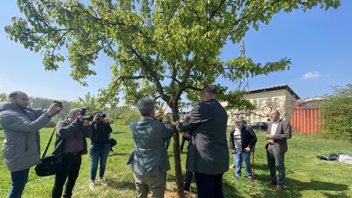 Les amateurs de bons fruits locaux ont de quoi se réjouir: Claude Haagen, ministre de l’Agriculture, de la Viticulture et du Développement rural, et Emile Eicher, président du Syndicat des villes et communes luxembourgeoises (Syvicol) ont lancé la 2e édition de la campagne anti-gaspillage «Gielt Band − Hei dierft Dir plécken» ce mercredi, 27 avril 2022 dans le verger communal à Schifflange situé dans la rue de Hédange. Dans ce verger, les premiers cerisiers, mirabelliers, pruniers, pommiers, poiriers… en floraison annoncent en effet déjà l’arrivée de la saison fruiticole et marquent donc le début de la campagne «Gielt Band − Hei dierft Dir plécken» avec la cueillette des cerises au mois de juin. Ruban jaune synonyme de feu vert! «Hei dierft Dir plécken − Zerwéiert Iech!» Le concept est simple: si un ruban jaune est attaché à un arbre fruitier, la cueillette pour usage personnel est autorisée, voire même encouragée pour éviter que des centaines de kilos de fruits pourrissent sur et sous les arbres. Dans ce contexte, Claude Haagen a souligné que la campagne permettait ainsi de faire d’une pierre deux coups, en luttant activement contre le gaspillage alimentaire et en valorisant les fruits locaux, qu’ils soient beaux ou moches, parfaits ou mal calibrés. Emile Eicher, pour sa part, s’est réjoui de l’élan de solidarité des communes sachant qu’à ce jour 40 communes se sont montrées solidaires en s’associant à l’action et que 3.500 arbres ont été marqués de rubans jaunes. Le président du Syvicol espère qu’il y en aura désormais davantage et «qu’au moins la barre des 50 participants sera franchie». Coup d’accélérateur à la lutte contre les pertes et le gaspillage alimentaire Suite au succès de l’édition de 2021, le ministre Claude Haagen compte étendre l’initiative collective «Gielt Band» cette année aux personnes privées, aux associations et aux entreprises propriétaires d’arbres fruitiers! «À l’heure actuelle, dans un contexte de conflits armés, de crise sanitaire et de changement climatique, il est plus important que jamais de continuer à sensibiliser et à mobiliser autant de gens que possible contre le gaspillage alimentaire», a-t-il ajouté. En outre, le ministère de l’Agriculture de la Viticulture et du Développement rural a soutenu financièrement la nouvelle carte en ligne minett-biosphere.com du syndicat intercommunal PRO-SUD. Ce projet pilote «Tutti Frutti» a permis de répertorier l’emplacement exact de 74 vergers communaux dans la Minett Unesco Biosphere et les 17 sortes de fruits qu’on y trouve. Dans son intervention, Paul Weimerskirch, bourgmestre de la Ville de Schifflange, et membre du comité PRO-SUD, a souligné que l’opération Gielt Band met en valeur des thèmes chers à la réserve de biosphère, portant sur l’alimentation durable. Les rubans jaunes pour les arbres fruitiers publics ou privées peuvent être commandés gratuitement via le site www.antigaspi.lu. Dès aujourd’hui et pendant toute la période de récolte, c’est-à-dire jusqu’à fin octobre, il s’agira donc de garder grands ouverts vos yeux afin de trouver les rubans jaunes ou de consulter la carte sur le site www.antigaspi.lu pour savoir dans quelles communes la cueillette gratuite est autorisée. Le site www.antigaspi.lu met à disposition: