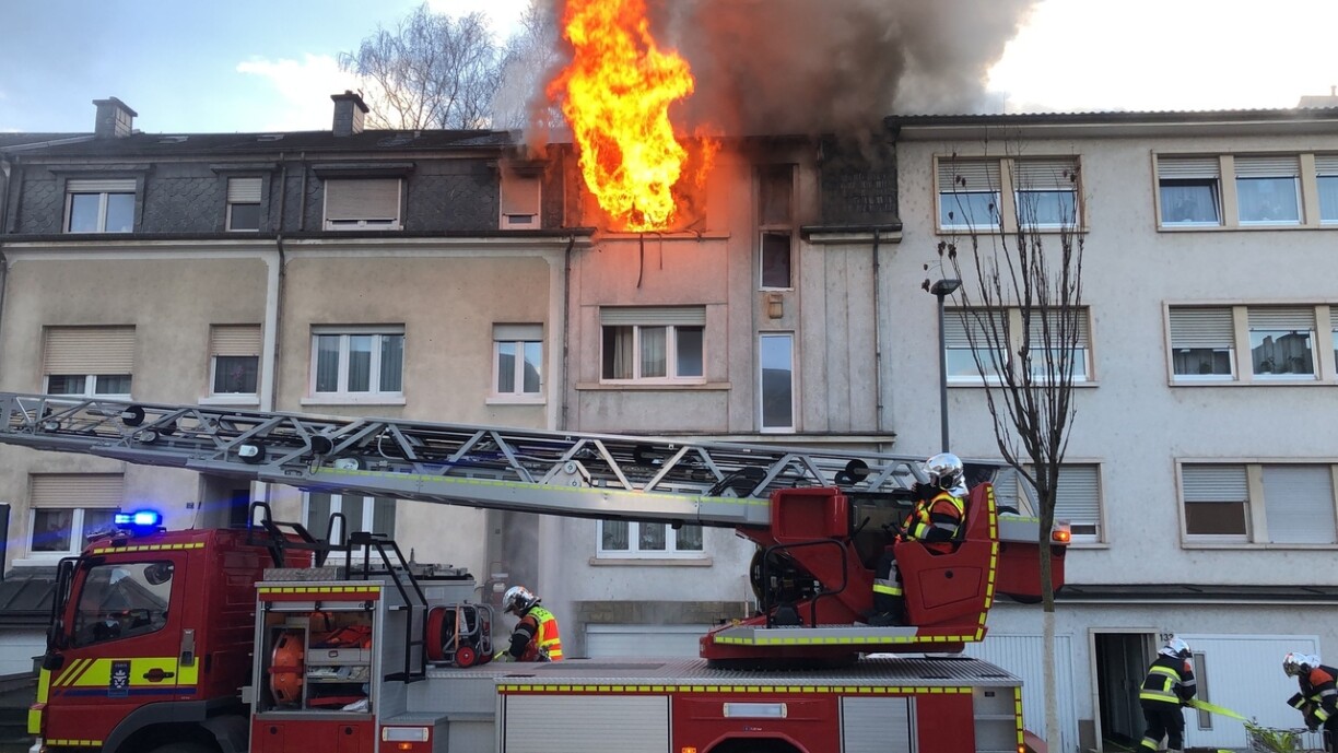 Effektiv huet ee scho vun der Nordstrooss aus relativ vill Damp gesinn. Den Daach vun engem Haus an der Rue de Warken hat Feier gefaangen.