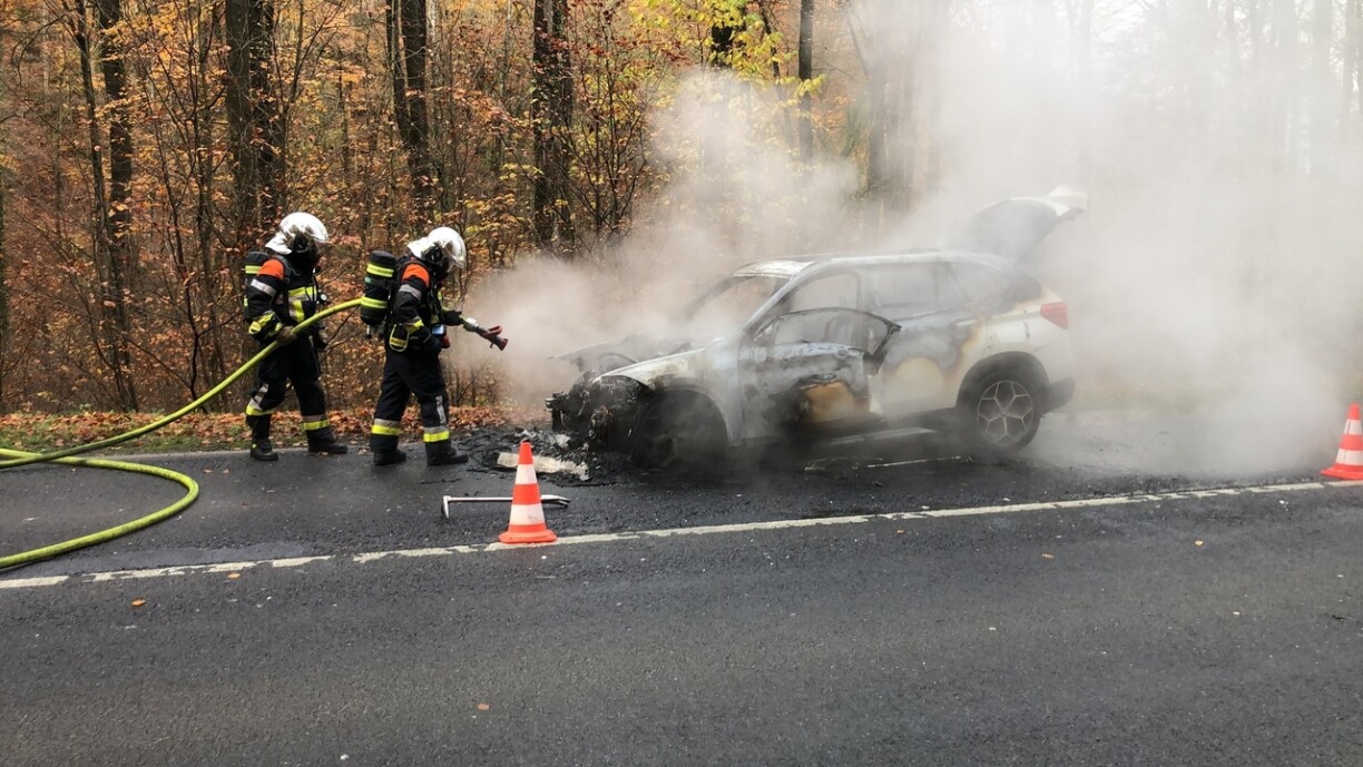 Ëm kuerz no 15 Auer huet d’Police e brennende Won op der Route de Remich an der Géigend vu der Éitermille gemellt. Fir d’Feier ze läsche misst d’Strooss komplett gespaart ginn. No ronn enger hallwer Stonn ass eng Spuer nees fir den Trafic opgaangen. Wéi et heescht gouf beim Virfall kee blesséiert.