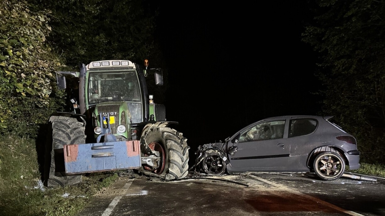 Och de CGDIS hat dëse Virfall am hirem Bulletin stoen, d’Police huet elo Detailer. En Automobilist war éischten Informatiounen no vum Stafelter a Richtung Eesebuer ënnerwee, wéi hien an enger Kéier d’Kontroll iwwer säi Won verluer huet. Dobäi krut hien en Trakter ze paken, dee grad deen Ament entgéintkoum.