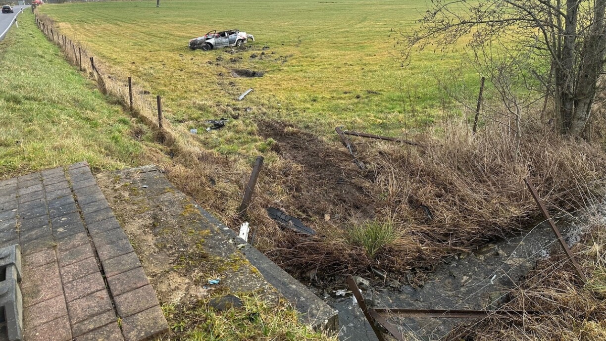 En Automobilist hat an enger liichter Lénkskéier d’Kontroll iwwer säi Gefier verluer a war vun der Strooss ofkomm. Dobäi huet sech de Won e puer Mol iwwerschloen, éier en an engem Feld zum Stoe komm ass. Wéi et vun der Police heescht, koum de Chauffer fir eng Kontroll an d’Spidol. De CGDIS schwätzt vun engem Blesséierten.