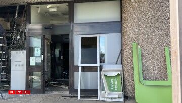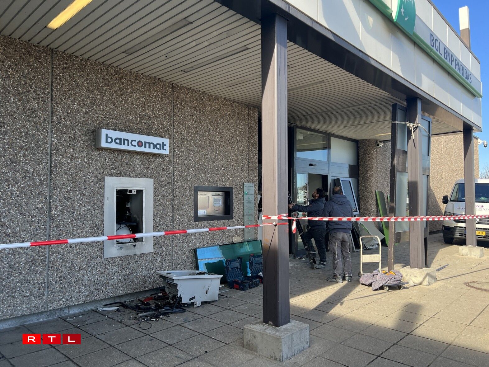 Am Virmëtteg waren d’Aarbechte beim gesprengte Bancomat scho gutt am Gaang. Ma och d’Botzerei, déi direkt nieft der Bank hiert d’Geschäft huet, gouf vun der Sprengung getraff. Zwar ass de Materialschued bei hinnen zimmlech geréng: E puer Luuchten, déi duerch de Schock erausgespronge sinn an den Damp vum Feier, deen e puer Spueren hannerlooss huet. Mee de Buttek muss um Freideg zoubleiwen.