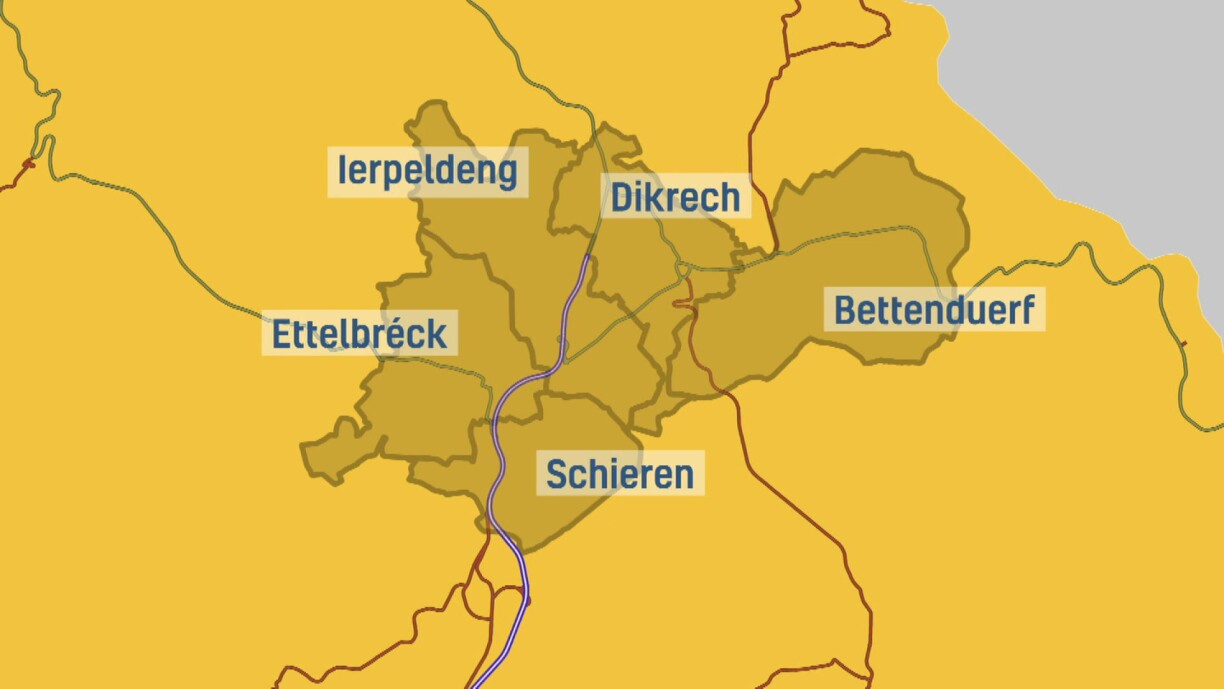 Et soll der dacks zitéierter Landesplanung déngen. Dee leschte PDAT ass nach aus dem Joer 2003. D’Gemengen Dikrech, Ettelbréck an Ierpeldeng un der Sauer ginn am neie PDAT als Centre de développement et d’attraction (CDA) d’importance nationale definéiert. Bettenduerf a Schieren géingen dee Status just am Fall vun enger Fusioun kréien. Ob et zu enger Fusioun kënnt, ass awer alles anescht wéi kloer. D’Gemengeréit vu Bettenduerf a Schieren wëlle sech virun de Gemengewalen am Juni d’nächst Joer net festleeën, wieren awer trotzdeem gären Deel vum CDA Nordstad. Am PDAT ass nämlech festgeluecht, datt ee CDA d’importance nationale nieft deenen normale Subside vum Staat op d’Awunnerzuel gerechent 25 Prozent zousätzlech kritt. Datt déi aner dräi Gemengen aus Solidaritéit op de Status verzichten, ass onrealistesch. Hannert virgehalener Hand ass ze héieren, datt d’Regierung esou Drock maache wëllt, fir datt et zu enger Fusioun kënnt.