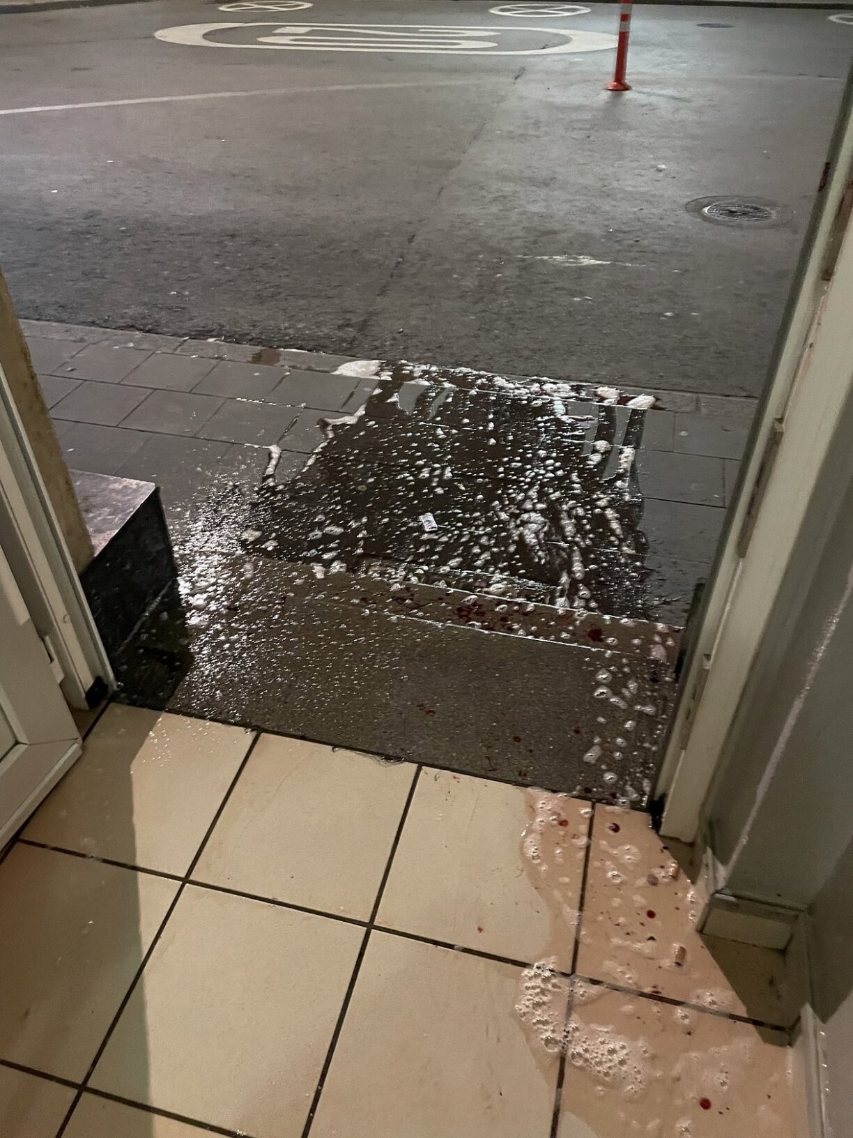 Doropshin huet si d’Police alarméiert, och, well si un der Mauer Pechbiller gesinn huet, déi d’Zentimeter gemooss hunn, wéi an engem Policefilm. Vun de Beamte krut si confirméiert, datt d’Police op der Plaz war an alles gereegelt wier. Och huet d’Persoun um Telefon hir ze verstoe ginn, datt et net un der Police wier, fir ze botzen. “Et hätt een eis awer op d’mannst informéiere kënnen. Stellt Iech emol vir, hei gi Kanner erof a gesinn dat”, sot d’Zeien de Kolleege vun RTL 5minutes. Vun der Police koum d’Erklärung, datt een net um Hallefnuecht d’Leit aus dem Bett wollt geheien. Fir datt d’Leit am Haus an och hir kleng Schwëster dës Zeen net huet musse gesinn, huet d’Fra selwer decidéiert, de Gank ze botzen, datt um Méindeg de Moie géint 6.15 Auer.
