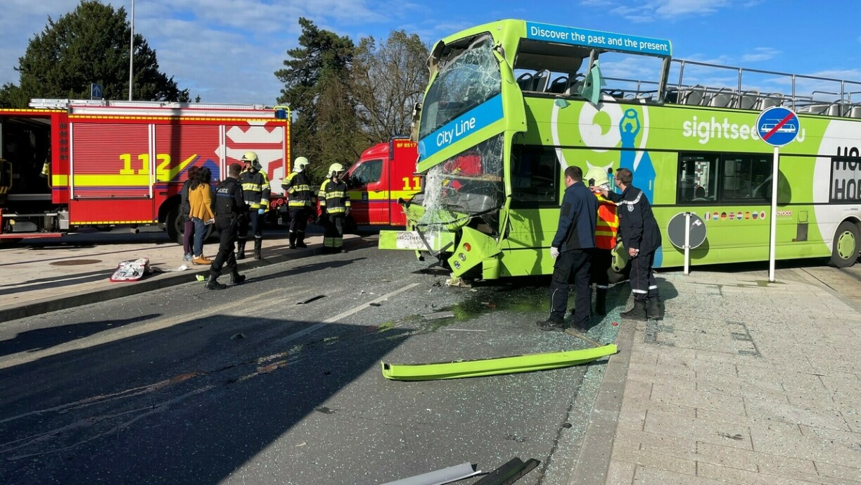 Well de Bus an de Camion d’Tramslinn blockéiert hunn, huet de Verkéier do och missten ënnerbrach ginn, bis d’Gefierer fortgeraumt waren. Wéi d’Police géint 14 Auer mellt, goufen zwou Persoune beim Accident liicht blesséiert a missten an d’Spidol bruecht ginn.