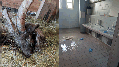 Doudeg Schof zu Dikrech a Kapp vu Geessebock zu Miersch