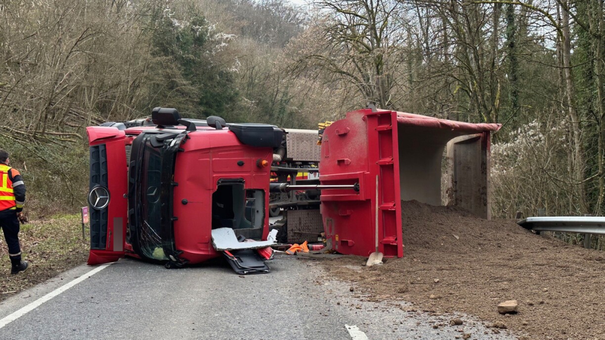 D’Ambulanz aus der Fiels, D’Pompjeeën aus der Nordstad a vun Angelduerf an den Helikopter vun der Air Rescue waren op der Plaz. D’Strooss ass aktuell fir den Trafic gespaart.